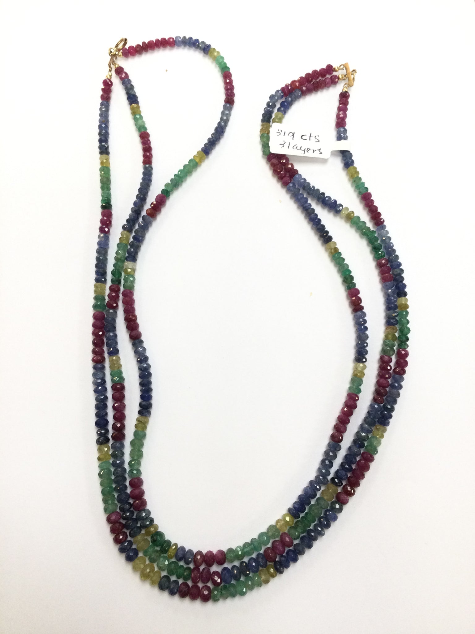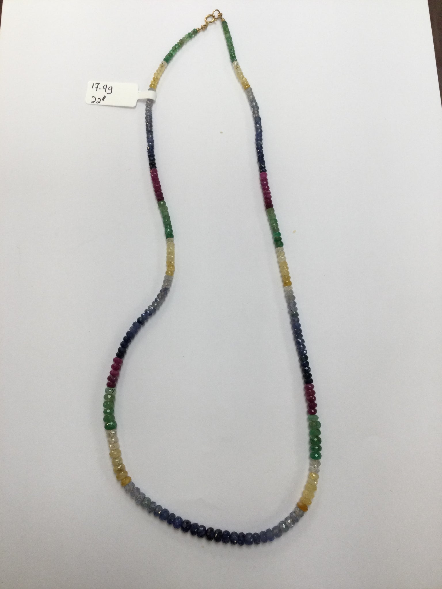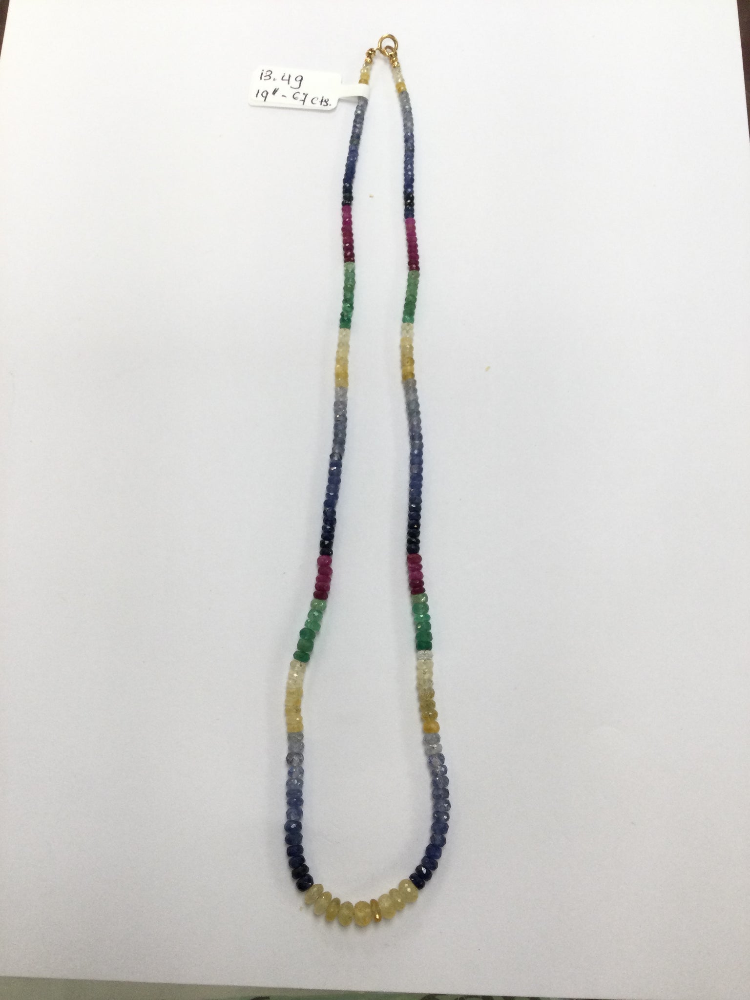 Citrine, Sapphire, Emerald and Ruby in Faceted Necklace with 14k gold.