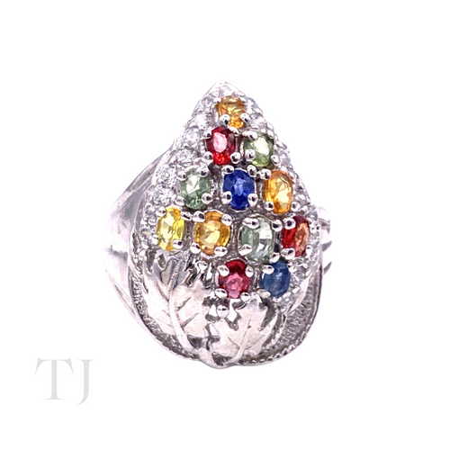 Multi Gemstones Tear Drop Shape Ring in Sterling Silver
