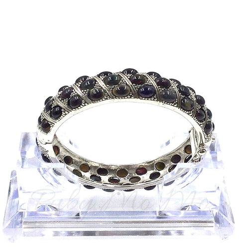 Opal bangle bracelet in sterling silver