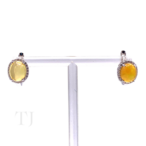 Ethiopian Opal Cabochon Earrings in Sterling Silver