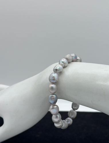 Grey Pearl Knotted ( Metal Heart Bracelet )
