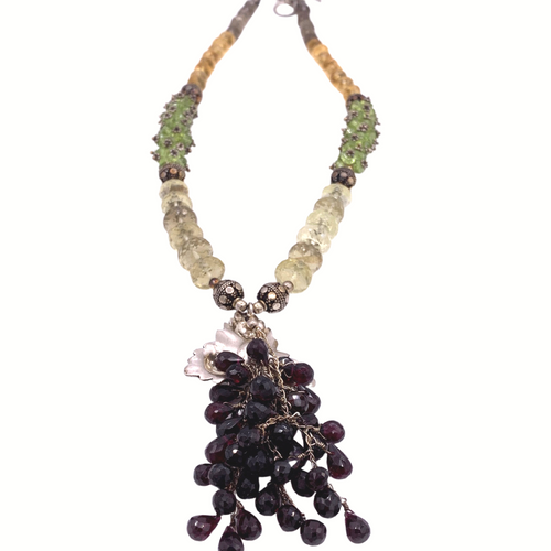 Aquamarine Grape Pendant in Sterling Silver Rhodium Coated