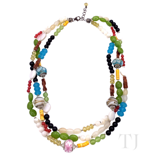 Multi Gemstones 3 Layered Necklace in Sterling Silver