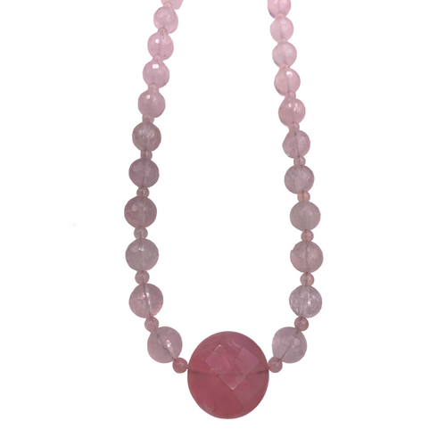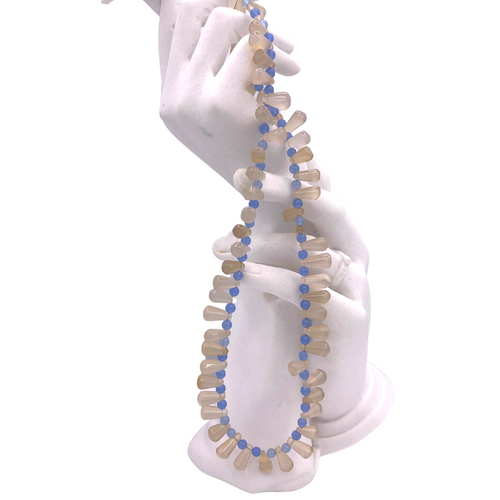 Blue Lace Agate Bead Necklace with square shaped pendant in sterling silver