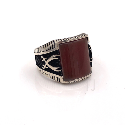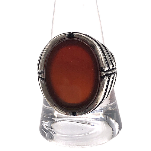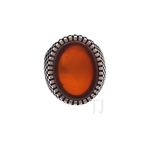 Oval Shaped Carnelian Ring in leaf veins sterling silver setting