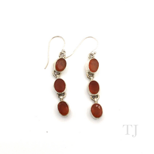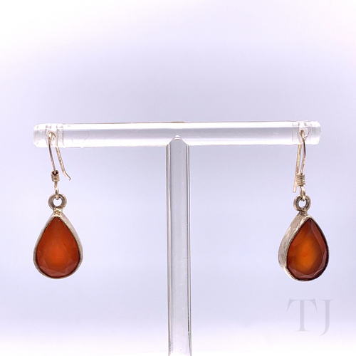 Carnelian Faceted Cut Earrings in Sterling Silver