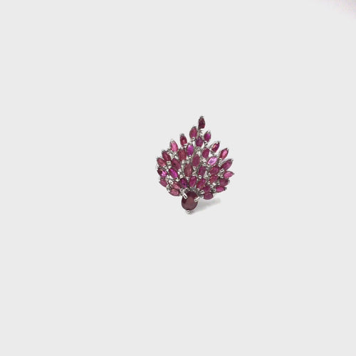 Ruby Peacock Ring in Sterling Silver (White Gold Coated)