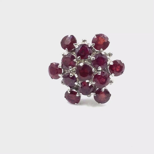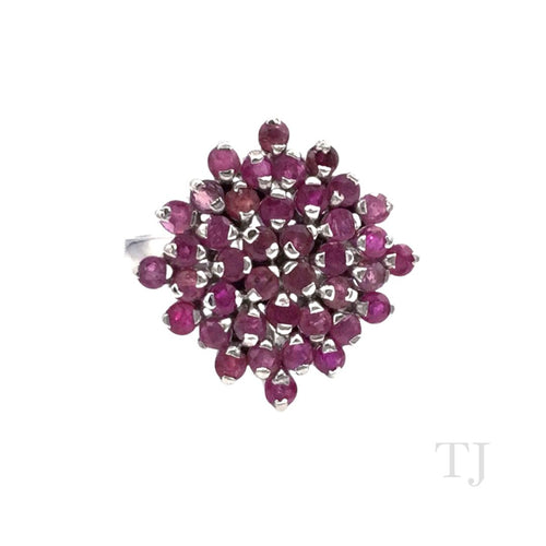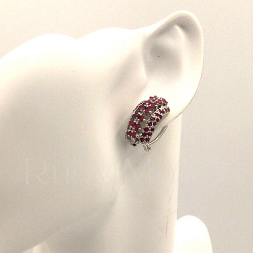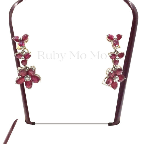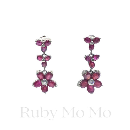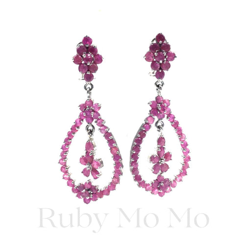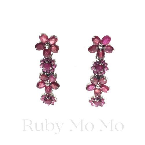 Ruby Quadruple Flowers Earrings in Sterling Silver