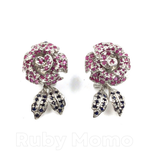 Ruby & Sapphire Rose Earrings in Sterling Silver