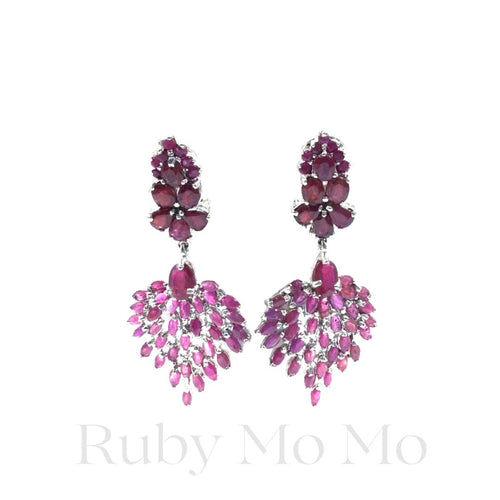 Ruby Peacock Tail Earrings in Sterling Silver (White Gold Coated)