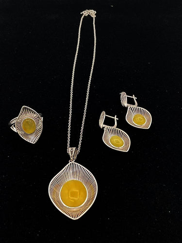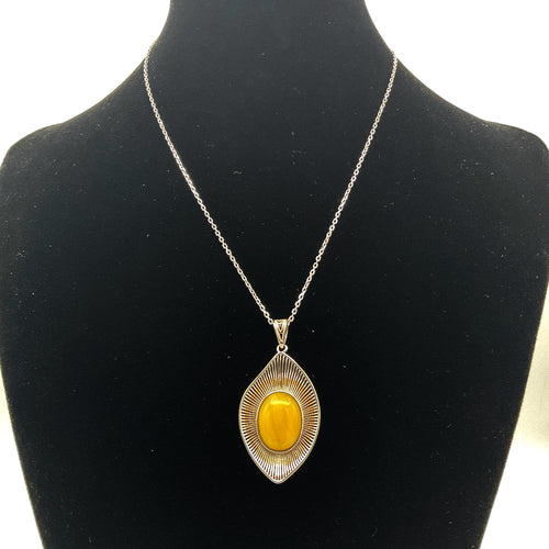 Amber Tear Drop Pendant with Sterling Silver Neckalce