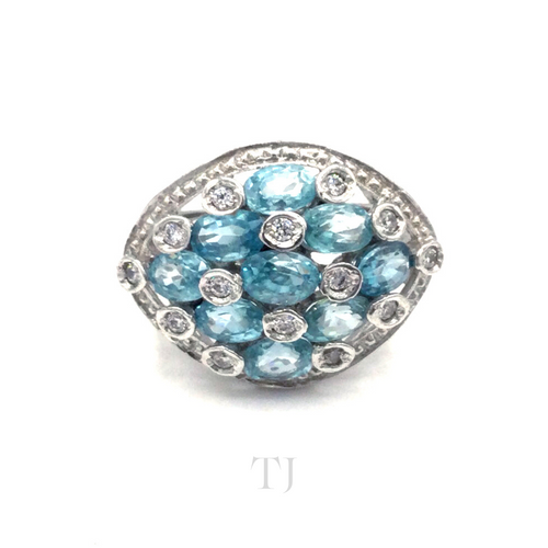 Aquamarine and MoonStone Silver Ring