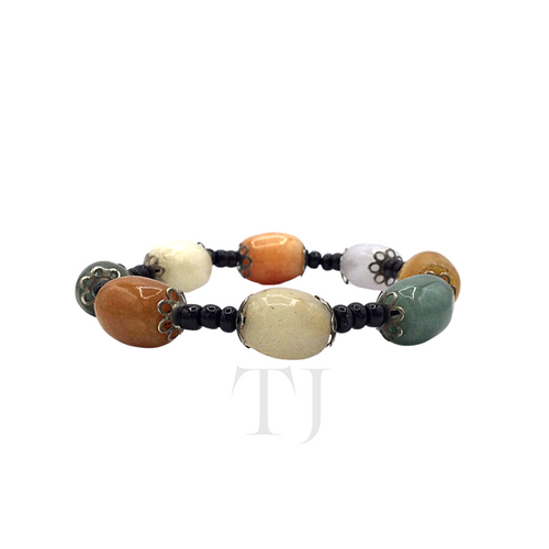 • 缅甸天然翡翠串珠手链(五彩翡翠)